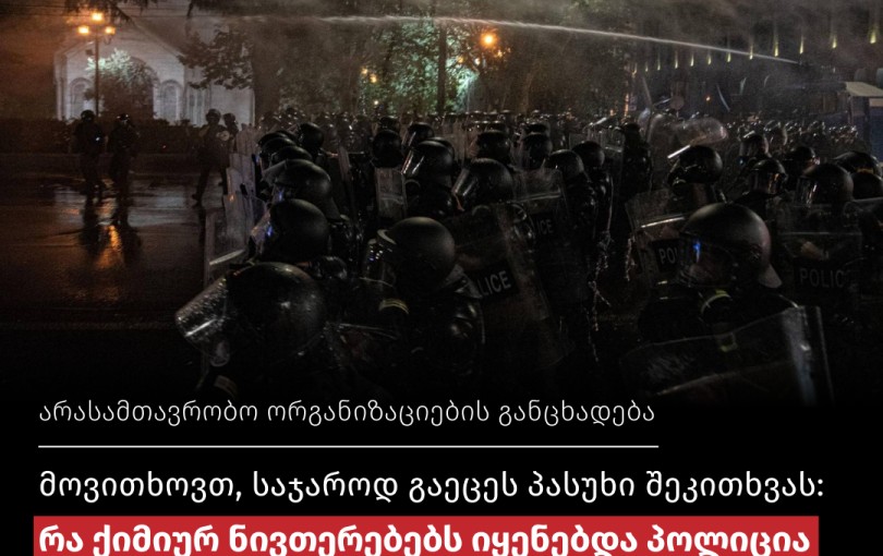 განცხადებები მოვითხოვთ, საჯაროდ გაეცეს პასუხი შეკითხვას: რა ქიმიურ ნივთერებებს იყენებდა პოლიცია მშვიდობიანი პროტესტის წინააღმდეგ? 2 დეკემბერი 2025