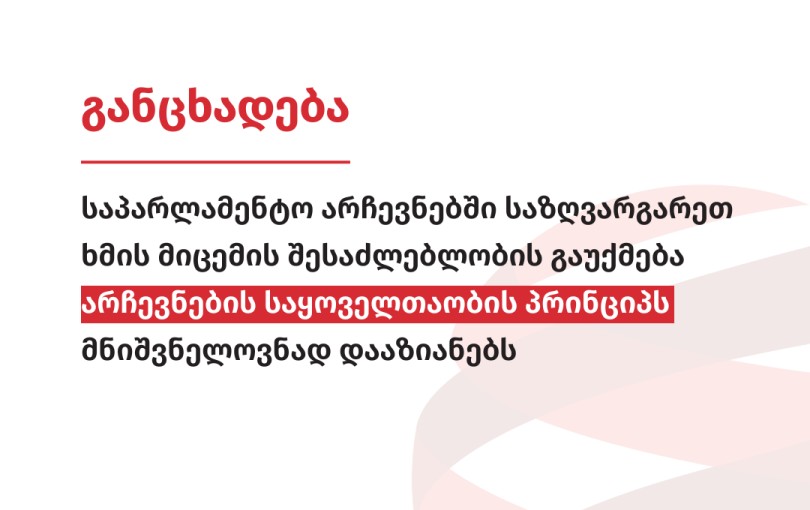 განცხადებები საპარლამენტო არჩევნებში საზღვარგარეთ ხმის მიცემის შესაძლებლობის გაუქმება არჩევნების საყოველთაობის პრინციპს მნიშვნელოვნად დააზიანებს 18 ნოემბერი 2025