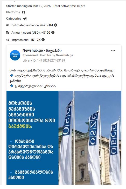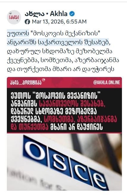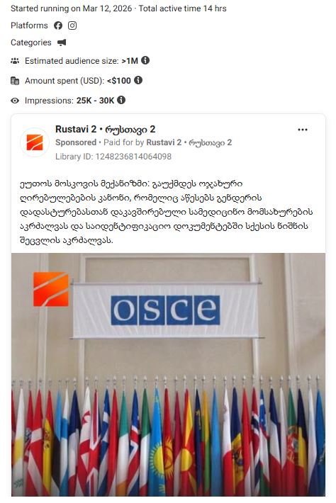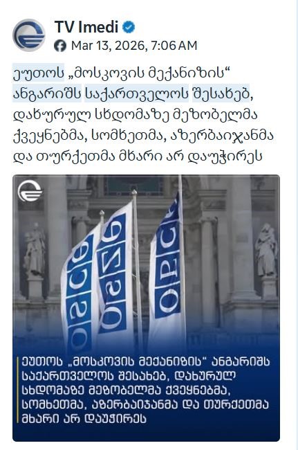 „ქართული ოცნების“ კოორდინირებული პროპაგანდისტული კამპანია ეუთოს მოსკოვის მექანიზმის ანგარიშის წინააღმდეგ
