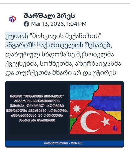 მოსკოვის მექანიზმის ფარგლებში მომზადებული დასკვნების დაკნინებისა და მისი რეკომენდაციების საზოგადოებისთვის მანიპულაციურად მიწოდების მიზნით, „ქართული ოცნების“ პორპაგანდისტულმა ეკოსისტემამ, რომელზეც „სამართლიან არჩევნებს” არაერთხელ დაუწერია, კოორდინირებული საინფორმაციო კამპანია წამოიწყო. კამპანიის ძირითადი გზავნილის მიხედვით, ეუთო „ოჯახური ღირებულებების შესახებ კანონისა“ და „უცხოური გავლენის გამჭვირვალობის შესახებ კანონის“ გაუქმებას ითხოვს. გავრცელებულ ქარდებზე მხოლოდ ეს მოთხოვნები იყო გამოტანილი და რჩებოდა შთაბეჭდილება, რომ დასკვნა მხოლოდ ამ საკითხებს შეეხებოდა. აღნიშნული ქარდები, იდენტური ტექსტებით, ანგარიშის გამოქვეყნებიდან რამდენიმე წუთში ყველა პროპაგანდისტული მედიის გვერდზე განთავსდა. იმ გვერდებზე კი, რომლებსაც დარეკლამების ფუნქცია შეზღუდული არ აქვთ, პოსტები დასპონსორებული იყო.