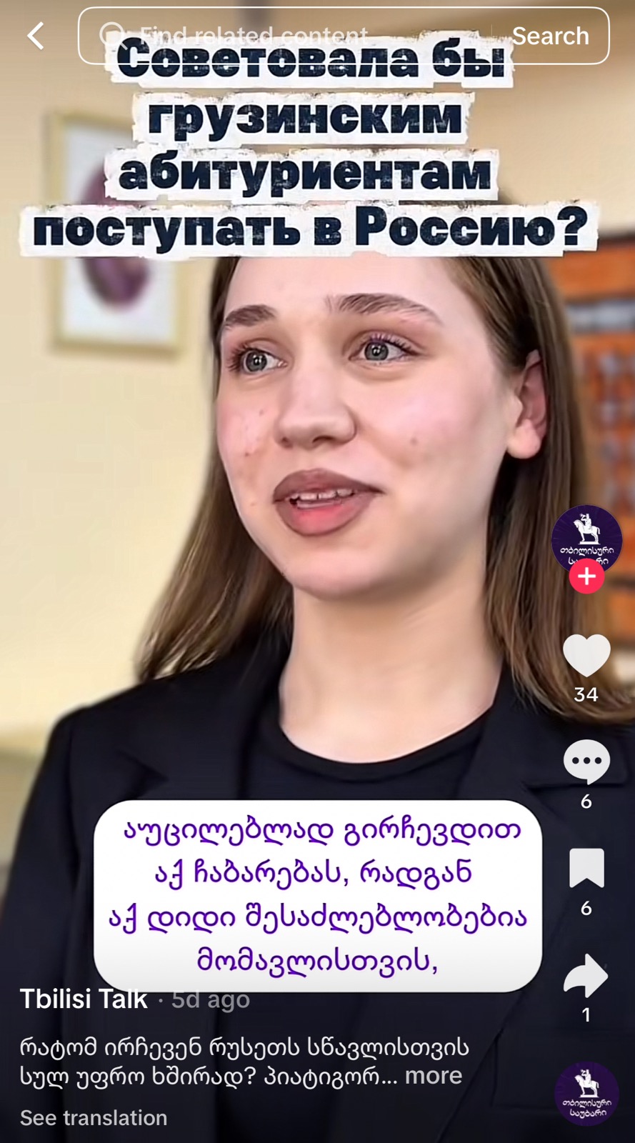 მიუხედავად ვიდეოების მრავალფეროვნებისა, ქსელის ძირითად ხაზს რუსეთში საქართველოს მოქალაქეებისთვის უფასო განათლების შესაძლებლობების შესახებ ინფორმაციის მიწოდება და ზოგადად, რუსეთში სწავლის პოპულარიზაცია წარმოადგენს. აღნიშნულ თემასთან დაკავშირებით, პირველი ვიდეო 14 იანვარს გამოქვეყნდა. ვიდეოში „სად მიდიან ქართველი სტუდენტები სასწავლებლად და რას სთავაზობენ მათ სხვადასხვა ქვეყნები?“ საუბარია იმ ევროპულ ქვეყნებზე, რომლებსაც ყველაზე ხშირად ირჩევენ სტუდენტები. ვიდეოში ევროპის პარალელურად, სტუდენტებისთვის მიმზიდველ შესაძლებლობად წარმოჩენილია რუსეთში უმაღლესი განათლება, სადაც საქართველოს მოქალაქეებისთვის 200 ადგილია გამოყოფილი და უფასო სწავლასთან ერთად, შესაძლებელია სტიპენდიისა და საცხოვრებლის მიღებაც. ქსელმა რუსეთში უფასო განათლების მიღებისა და უნივერსიტეტების შესახებ თითოეულ ანგარიშზე 15 ვიდეო გამოაქვეყნა. მათი უმრავლესობა რუსული უნივერსიტეტების პოპულარიზაციასა და იმ შესაძლებლობებს შეეხებოდა, რომლებსაც უცხოელ სტუდენტებს აძლევენ. აღსანიშნავია, რომ მსგავსი ვიდეოები, ძირითადად, ღია წყაროებიდან აღებული ვიდეოებისა და ფოტოებისგან არის შექმნილი.