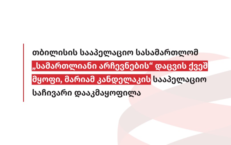 განცხადებები თბილისის სააპელაციო სასამართლომ „სამართლიანი არჩევნების“ დაცვის ქვეშ მყოფი, მარიამ კანდელაკის სააპელაციო საჩივარი დააკმაყოფილა 1 აპრილი 2026