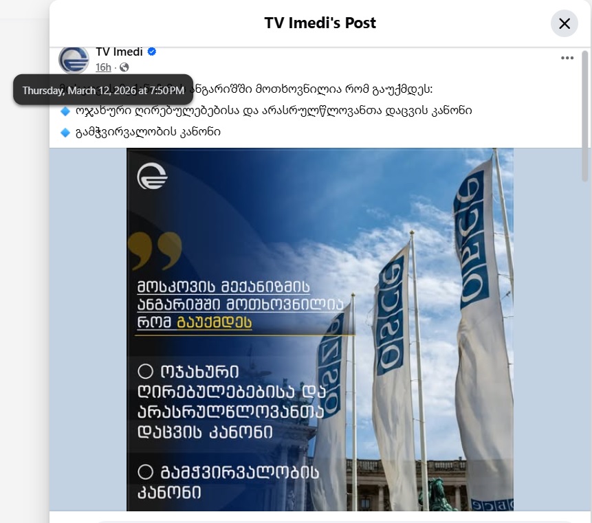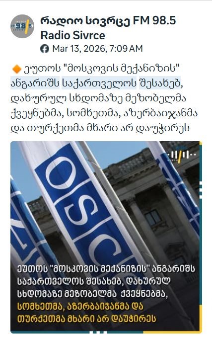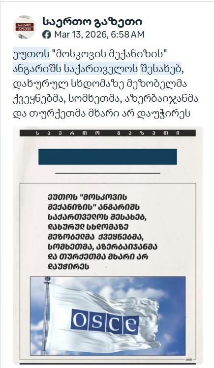 „ქართული ოცნების“ კოორდინირებული პროპაგანდისტული კამპანია ეუთოს მოსკოვის მექანიზმის ანგარიშის წინააღმდეგ