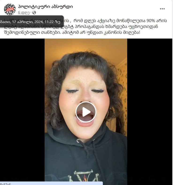 2024 წლის 3 აპრილს საპარლამენტო უმრავლესობამ „უცხოური გავლენის გამჭვირვალობის შესახებ“ კანონპროექტი დააინიცირა. ამ მოვლენას კრიტიკული გამოხმაურება მოჰყვა როგორც ქვეყნის შიგნით, ისე საერთაშორისო აქტორების მხრიდან. სოციალურ ქსელებში ანონიმურად მოქმედ პროსახელისუფლებო გვერდებსა და ანგარიშებზე მალევე დაიწყო აქტიური კამპანია, რომელიც მიზნად კანონპროექტის მხარდაჭერის გაზრდასა და მისი მოწინააღმდეგეების დისკრედიტაციას ისახავდა. კამპანიის ფარგლებში, კანონონპროექტთან დაკავშირებით ოთხი ძირითადი ნარატივი ვრცელდებოდა. მათ შორის, წარმოჩენილი იყო, რომ ქართული კანონპროექტი 1) არ არის მკაცრი, 2) ის „ევროპულია“, 3) ქვეყნის სუვერენიტეტსა და ღირსებას იცავს და 4) არასამთავრობო ორგანიზაციებს გამჭვირვალობის ეშინიათ. კანონპროექტთან დაკავშირებული პროტესტის წინააღმდეგ გამოიყენებოდა აქციების მონაწილეების გზავნილების გაყალბებით დეზინფორმაციის გავრცელების მეთოდიც.