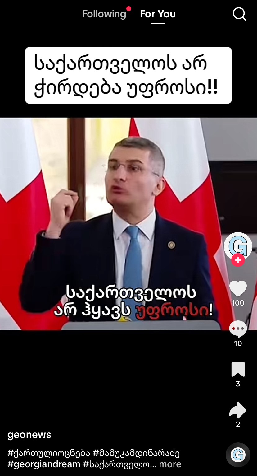 სამართლიანი არჩევნებისა და დემოკრატიის საერთაშორისო საზოგადოების სოციალური მედიის მონიტორინგის პროგრამა ხორციელდება საქართველოში ნიდერლანდების სამეფოს საელჩოს მხარდაჭერით. მოცემული პუბლიკაცია ეკუთვნის მხოლოდ „სამართლიან არჩევნებს“ და შესაძლოა, არ ასახავდეს დონორის შეხედულებებს.