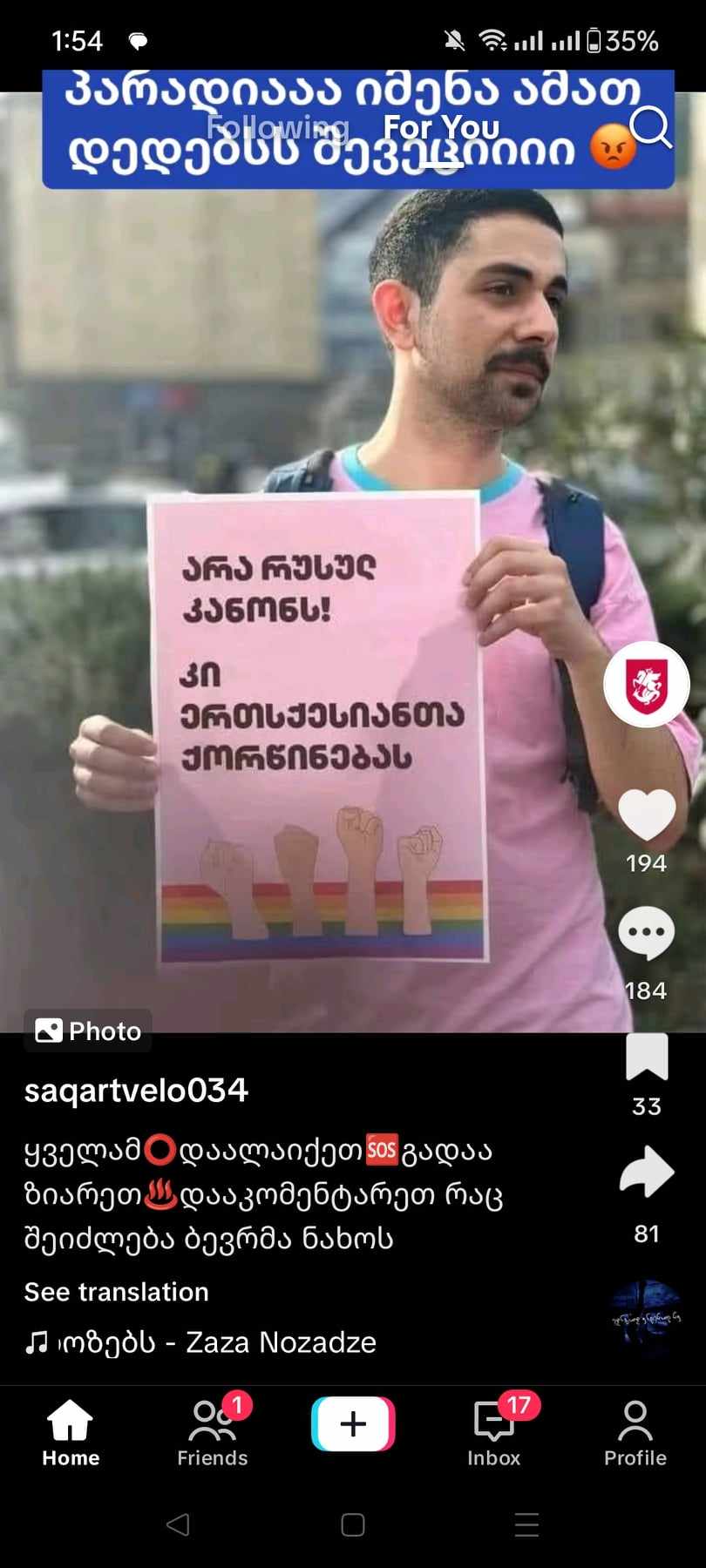 აქციების საწინააღმდეგო კამპანია ჰომოფობიური ნიშნით