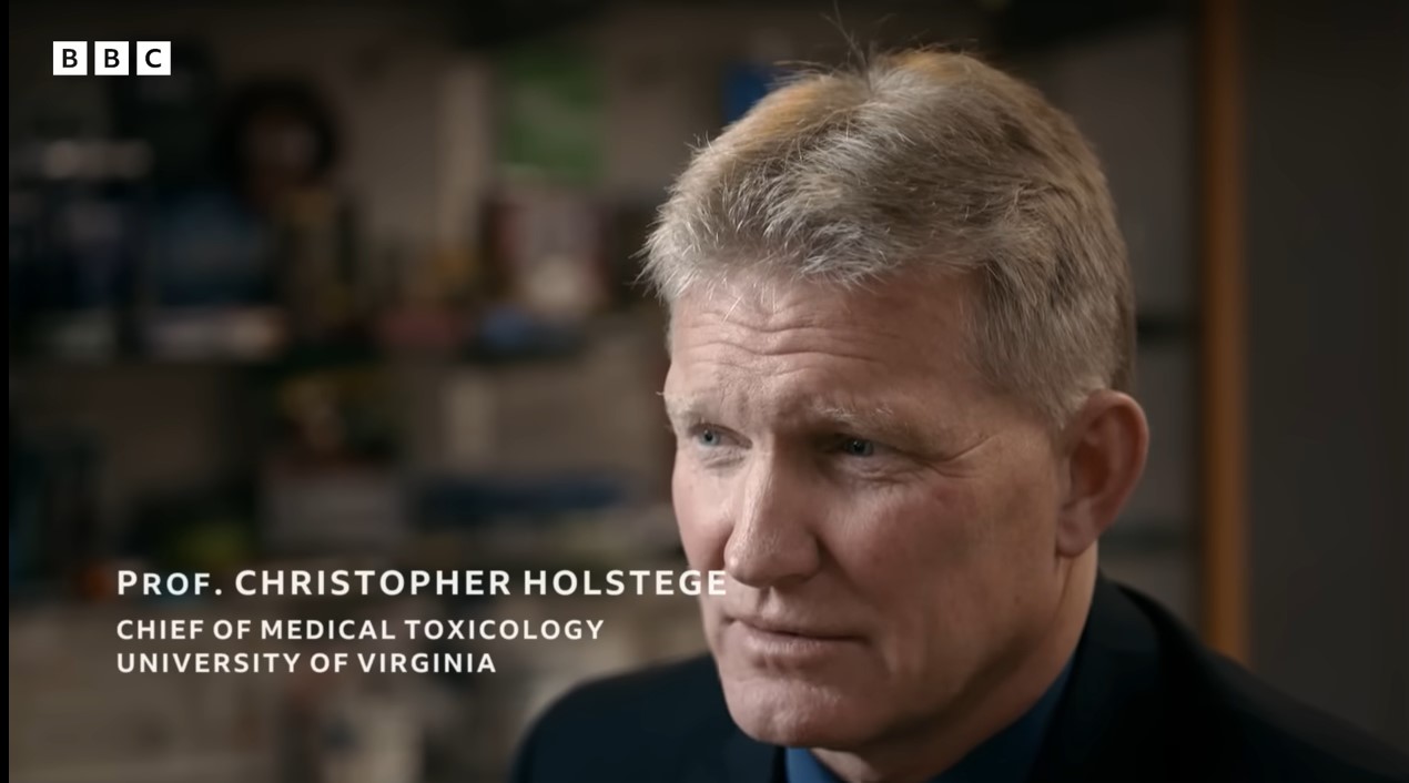 სინამდვილეში BBC-მ გამოძიების ფარგლებში შეკითხვებით მიმართა ერთ-ერთ გავლენიან ტოქსიკოლოგს, ვირჯინიის უნივერსიტეტის სამედიცინო ტოქსიკოლოგიის განყოფილების ხელმძღვანელს, პროფესორ კრისტოფერ ჰოლსტიგს. აღსანიშნავია, რომ მისი სამეცნიერო ნაშრომები 4500-ზე მეტჯერ არის ციტირებული.