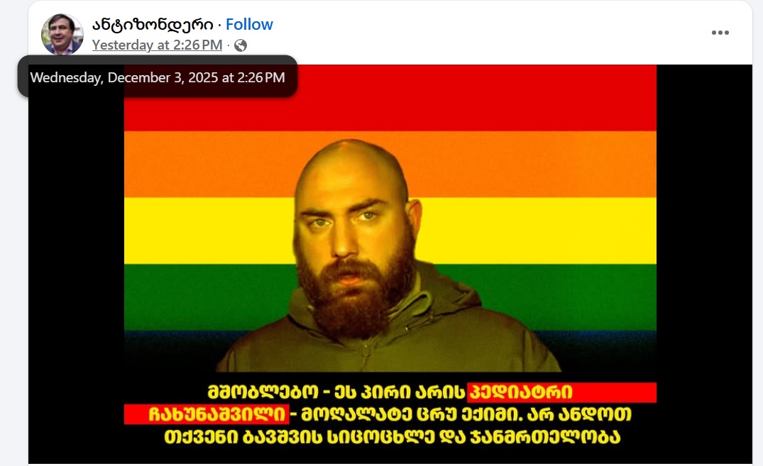 „ქართული ოცნების“ პროპაგანდის ეკოსისტემამ მიზანმიმართულად სცადა იმ ექიმებისა და ექსპერტების რეპუტაციის შელახვა, რომლებმაც BBC-სთან ინტერვიუში აღწერეს აქციის მონაწილეებში „არატიპური სიმპტომები“, მათ შორის ქიმიური ინტოქსიკაციის ნიშნები. ექიმები გამოცხადდნენ ოპოზიციასთან კავშირში მყოფ, „პოლიტიზებულ“ პირებად, რომელთა პროფესიული მოსაზრება თითქოს უღირსი იყო სამეცნიერო განხილვისთვის. სოციალური მედიის პლატფორმებზე აქტიურად მიმდინარეობდა ჩახუნაშვილების პერსონალური დისკრედიტაციის კამპანია.