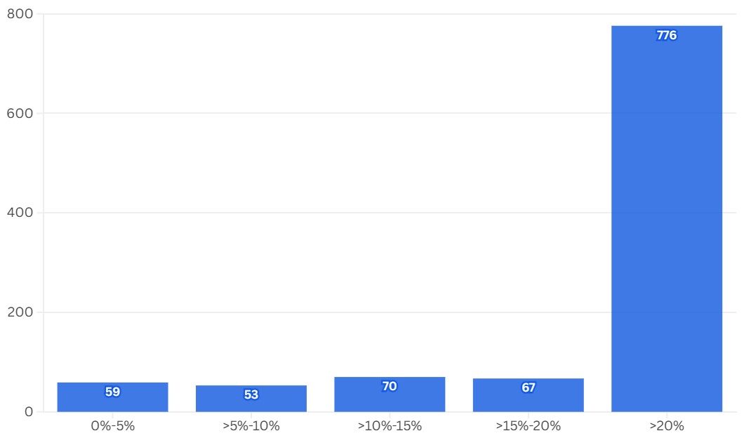 2025 წლის მუნიციპალიტეტის ორგანოთა არჩევნებისთვის განსაზღვრული ადგილობრივი მაჟორიტარული ოლქების უცვლელად შენარჩუნება ყოველი მომდევნო მუნიციპალური არჩევნებისთვის არღვევს საერთაშორისო ხელშეკრულებებით, ევროპული საარჩევნო სტანდარტებით, საქართველოს კონსტიტუციითა და საარჩევნო კოდექსით განსაზღვრულ თანასწორი საარჩევნო უფლების ფუნდამენტურ პრინციპს, რადგანაც 2025 წელს საარჩევნო კომისიების მიერ შესაბამის მუნიციპალიტეტში შექმნილ ადგილობრივ ერთმანდატიან ოლქებში ამომრჩეველთა რაოდენობა მკვეთრად უთანასწოროდ განაწილდა, რითაც თანაბარი ხმის უფლება უხეშად ირღვევა. აღსანიშნავია, რომ თვითმმართველ თემებში 2025 წელს შექმნილი ადგილობრივი მაჟორიტარული საარჩევნო ოლქების 82%-ში შესაბამისი მუნიციპალიტეტის ერთი ოლქის ამომრჩეველთა საშუალო რაოდენობიდან გადახრა 15%-ზე მაღალია (იხილეთ დიაგრამა 1 და სურათი 1). ვენეციის კომისიის საარჩევნო ნორმათა კოდექსის მიხედვით, განაწილების დადგენილი კრიტერიუმიდან მაქსიმალური დასაშვები გადახრა დამოკიდებულია კონკრეტულ სიტუაციაზე, თუმცა იგი იშვიათად უნდა სცილდებოდეს 10%-ს და არასოდეს არ უნდა აღემატებოდეს 15%-ს, გარდა განსაკუთრებული გამონაკლისებისა. ადგილობრივი წარმომადგენლობითი ორგანოების ერთმანდატიანი ოლქების უკანასკნელი მოწყობა საქართველოში არათუ არ ექცევა დასაშვებ ნორმაში, ოლქების უთანაბრობა მუნიციპალიტეტების დიდ უმრავლესობაში სცდება კრიტიკულ ზღვარს და ნორმიდან რამდენიმე ასეული პროცენტით გადახრამდეც აღწევს.