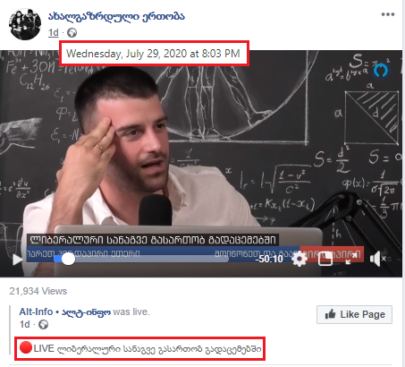 „ალტ-ინფოს“ კოორდინირებული ფარული ოპერაცია Facebook-ზე