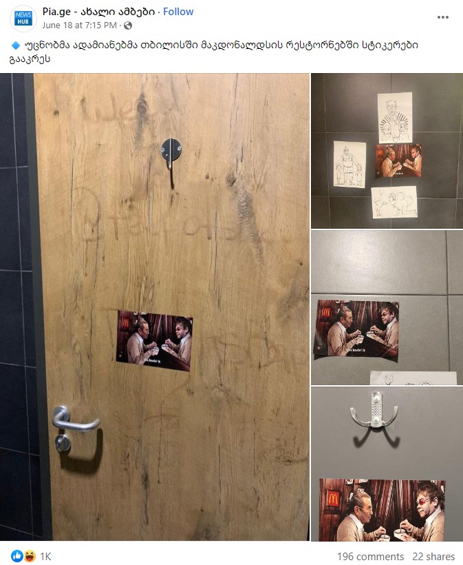 12 ივნისს „იმედისა” და “POSTV-ის” ფეისბუქგვერდებმა გაავრცელეს ინფორმაცია, რომ „მაკდონალდსის” „ჰეფი მილის” საოჯახო მენიუში საჩუქრად გამოჩნდა წიგნი, რომელშიც ელტონ ჯონის პირად ურთიერთობაზეა მოთხრობილი. ინფორმაცია მალევე გავრცელდა სხვა პროსახელისუფლებო მედიასაშუალებებსა და ანონიმურად მოქმედ ფეისბუქგვერდებზე. მედიასაშუალებები ბიზნესმენ თემურ ჭყონიასა და მის შვილს ჰომოფობიურ კონტექსტში „ლგბტ პროპაგანდის” გავრცელებაში სდებდნენ ბრალს. გავრცელებულ პოსტებში ანონიმურად მოქმედი გვერდები აღნიშნავდნენ, რომ ჭყონია ოპოზიციურ მედიასაშუალებებს ასპონსორებს. მალევე მოძრაობის „არ აგარევინებთ” სახელით მოქმედმა გვერდმა თემურ ჭყონიას საწინააღმდეგო ფოტომანიპულაციაც გამოაქვეყნა. პოსტი პოლიტიკური შინაარსის სხვადასხვა ჯგუფში მოძრაობასთან დაკავშირებულმა საეჭვო ანგარიშებმა გაავრცელეს. პოსტების ნაწილი დარეკლამებული იყო.