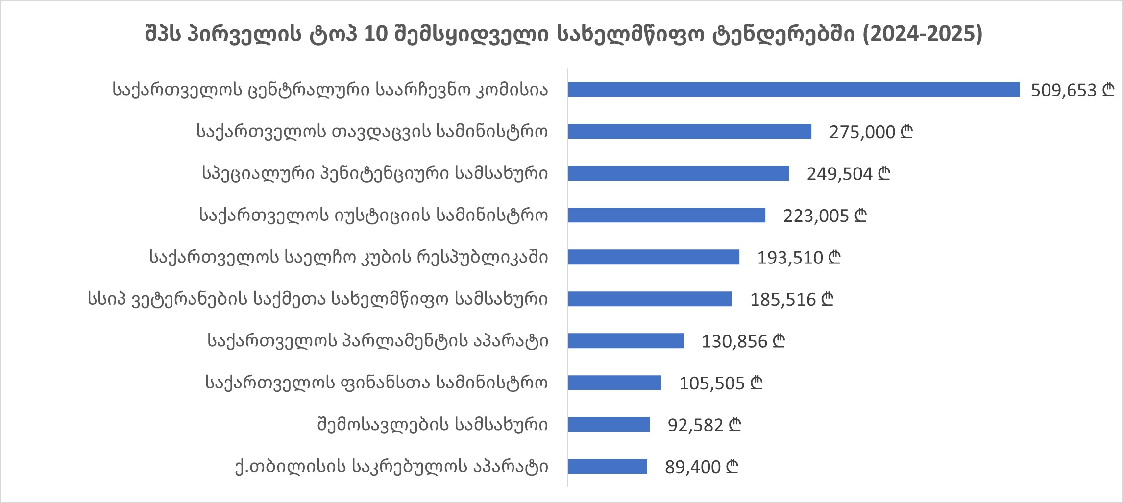გამარტივებული შესყიდვის გზით ყველაზე მეტი საბიუჯეტო თანხა საინფორმაციო სააგენტო ნიუსჰაბის (ყოფილი Pia.ge) მფლობელმა შპს პირველმა მიიღო, რაც დაახლოებით 830 ათას ლარს შეადგენს. გამარტივებული შესყიდვების კონტრაქტების რაოდენობითა და ბიუჯეტიდან მიღებული თანხებით ასევე გამოირჩეოდნენ საინფორმაციო სააგენტო აიპრესის მესაკუთრე შპს თავისუფალი გაზეთი +, შპს კვირა+, შპს პრაიმ თაიმი, შპს გაზეთი რეზონანს პლუსი და სხვა კომპანიები/ორგანიზაციები.